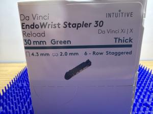 Genuine Intuitive Surgical EndoWrist stapler reloads designed for use with da Vinci surgical systems. Green reload configuration for thick tissue applications. Engineered for consistent staple formation and reliable surgical performance.