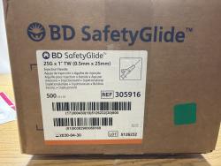 BD SafetyGlide 305916 25G x 1 Inch Safety Injection Needle 500 Count